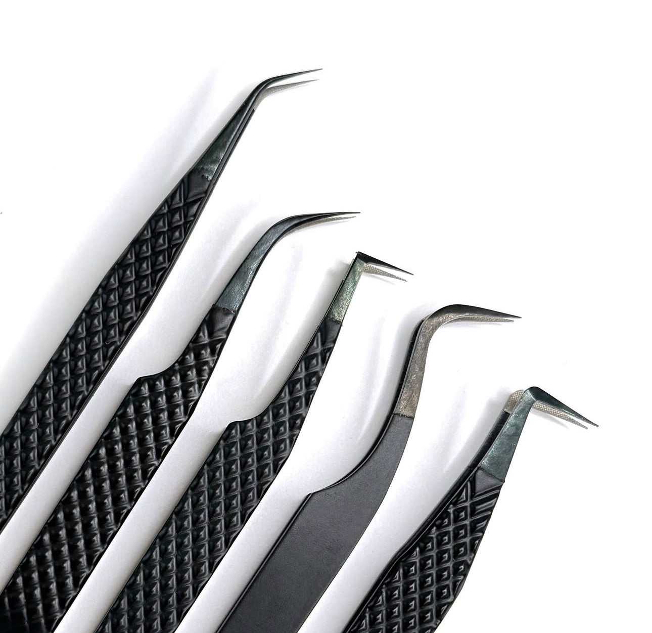 Experience effortless precision with our uniquely designed tweezers featuring textured tips for a secure grip. Say goodbye to the hassle of finding the perfect angle—these versatile tweezers are custom-shaped to meet the needs of every lash artist. Perfect your craft with ease and confidence!